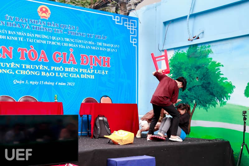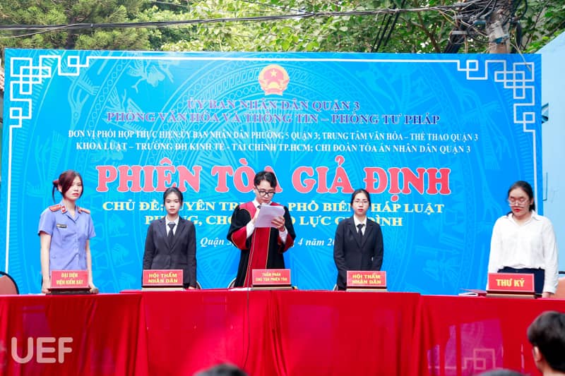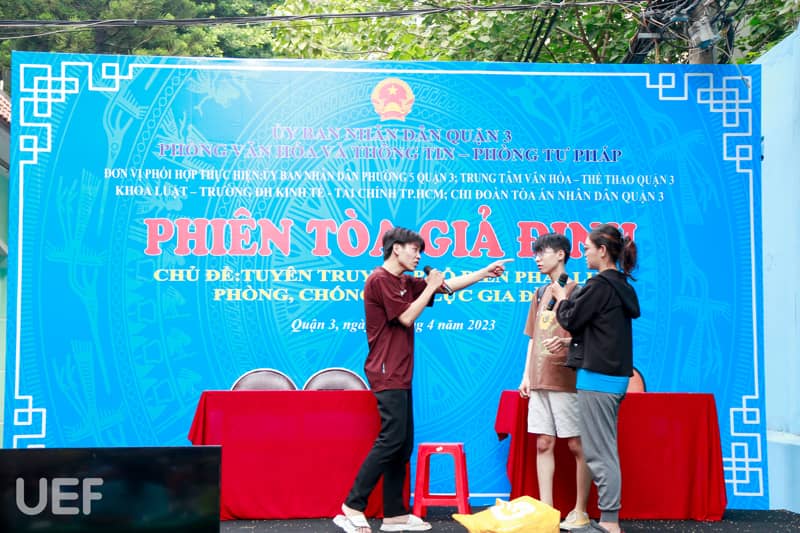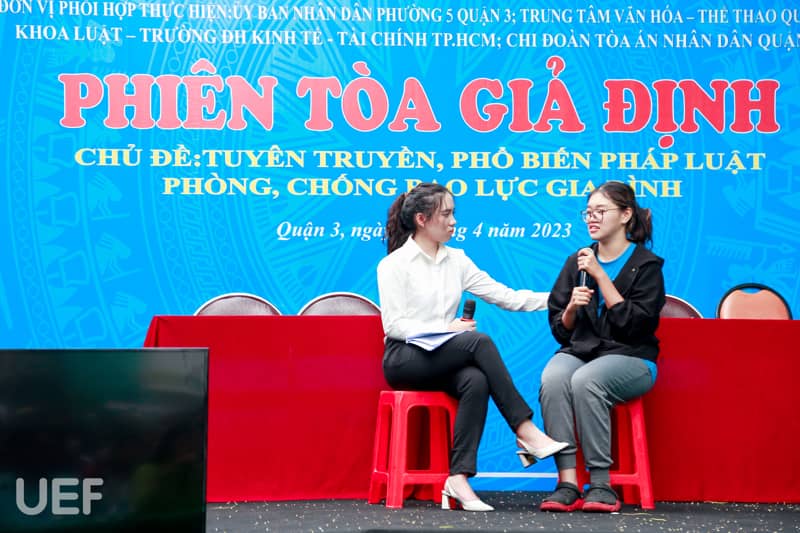 Tiếp nối thành công của các phiên tòa giả định trước đó, sáng 15/4, sinh viên Khoa Luật UEF tiếp tục thành lập "hội đồng xét xử" vụ việc ly hôn và tranh chấp quyền nuôi con liên quan đến bạo lực gia đình. Chương trình nằm trong hoạt động tuyên truyền phổ biến, giáo dục pháp luật về phòng, chống bạo lực gia đình do Khoa Luật UEF phối hợp với UBND Quận 3 (TP.HCM) tổ chức.