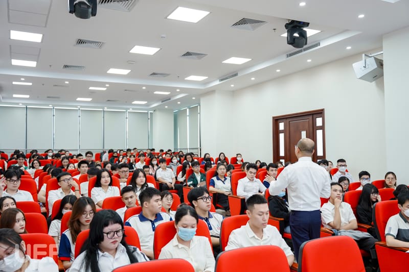 Diễn giả chia sẻ với sinh viên là Luật sư Hồ Vĩnh Long - Giám đốc pháp chế Ngân hàng HSBC. Tham dự chương trình có TS. Nhan Cẩm Trí - Phó Hiệu trưởng Nhà trường, ThS. Huỳnh Quốc Phong - Giám đốc Trung tâm Hợp tác doanh nghiệp, ThS. Vũ Anh Sao - Phó Trưởng khoa Luật, ThS. Nguyễn Thị Kim Loan - Phó Giám đốc Trung tâm Hợp tác doanh nghiệp cùng đông đảo sinh viên khoa Luật khóa 2020 theo dõi.
