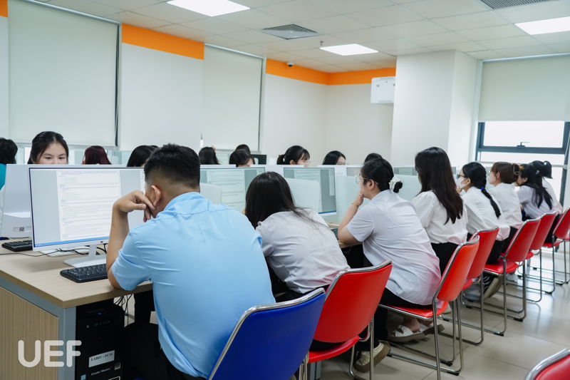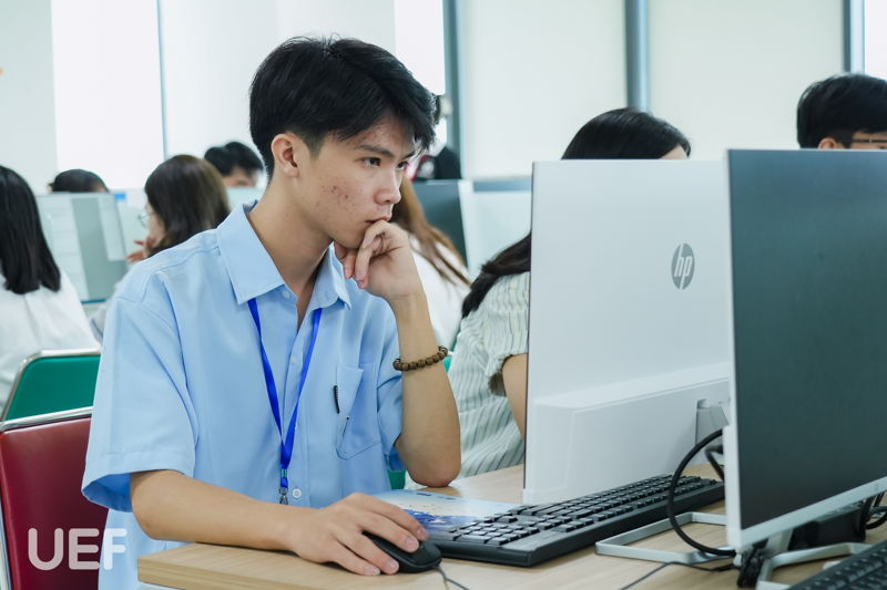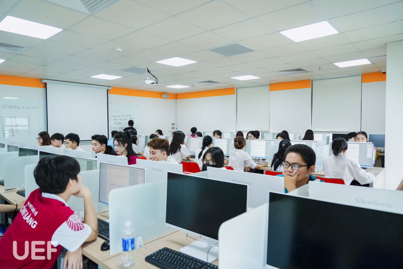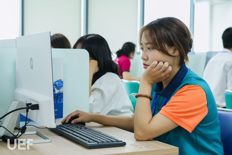 Phòng máy tại UEF sẵn sàng chờ đón các thí sinh bước vào từ sáng sớm. Kết thúc lễ khai mạc, 46 đội thi cùng di chuyển lên phòng máy để thực hiện một số thao tác về kiểm tra thông tin cá nhân và lắng nghe triển khai nội dung bài thi.