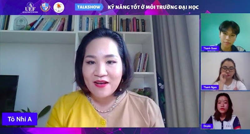 Bên cạnh chủ đề kỹ năng ở môi trường đại học, TS. Tô Nhi A đã trả lời nhiều thắc mắc của sinh viên về các chủ đề liên quan đến tâm lý học, đặc biệt những câu chuyện xảy ra trong thời gian giãn cách. Buổi talkshow vì thế cũng tự nhiên, sinh động và thu hút đông đảo sinh viên tham gia hơn.