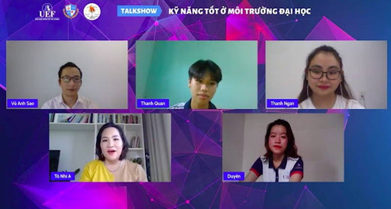 Buổi talkshow được tổ chức trực tuyến với sự đồng hành của Tiến sĩ tâm lý Tô Nhi A, TS. Nhan Cẩm Trí - Phó Hiệu trưởng Nhà trường, ThS. Nguyễn Huỳnh Sinh - Phó Trưởng phòng Công tác sinh viên, Bí thư Đoàn trường và ThS. Vũ Anh Sao - Phó Trưởng khoa Luật.