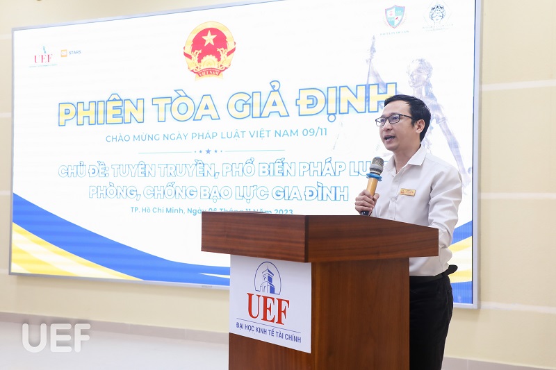 Với mong muốn tuyên truyền pháp luật, nâng cao nhận thức của người dân về hành vi xâm hại trẻ em, từ đó có những hành động kịp thời để bảo vệ quyền và lợi ích hợp pháp của đối tượng này, vào ngày 6/11, Khoa Luật đã phối hợp với Câu lạc bộ Pháp luật UEF Integrity Law Club tổ chức thành công phiên tòa giả định. Với chủ đề: “Tuyên truyền, phổ biến pháp luật phòng chống bạo lực gia đình”, buổi làm việc đã diễn ra một cách chuyên nghiệp, giàu tính thực tiễn và mang lại nhiều kiến thức bổ ích. Đây cũng là hoạt động nổi bật tại Nhà UEF nhằm chào mừng Ngày Pháp luật Việt Nam 9/11.