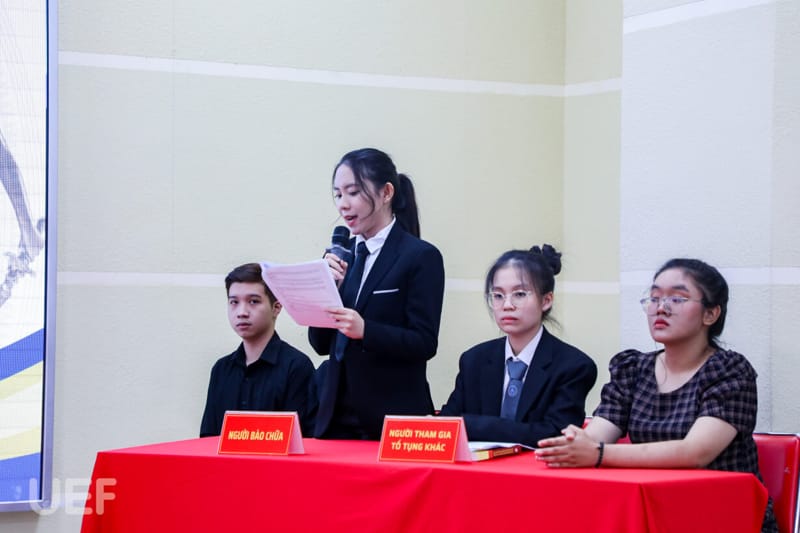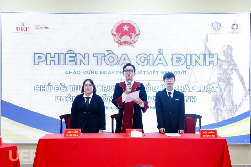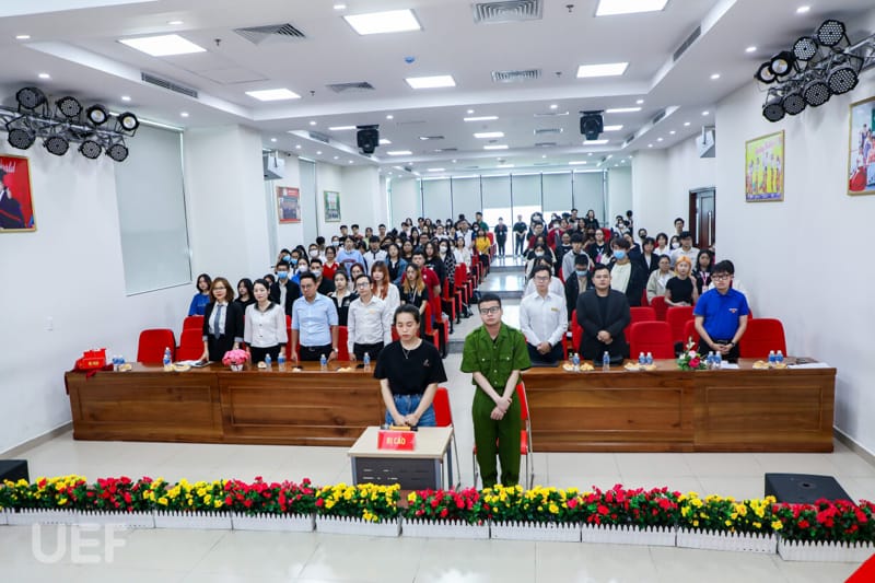 Phiên tòa giả định được xem là một trong những “đặc sản” của sinh viên nhóm ngành Luật tại UEF. Thông qua việc tái hiện diễn biến của một cuộc xét xử tại Tòa án, các bạn có thể phát triển toàn diện về kiến thức lẫn kỹ năng chuyên môn, đồng thời truyền tải thông tin một cách trực quan nhất đến người theo dõi.