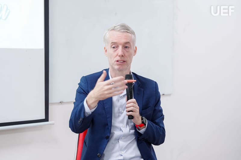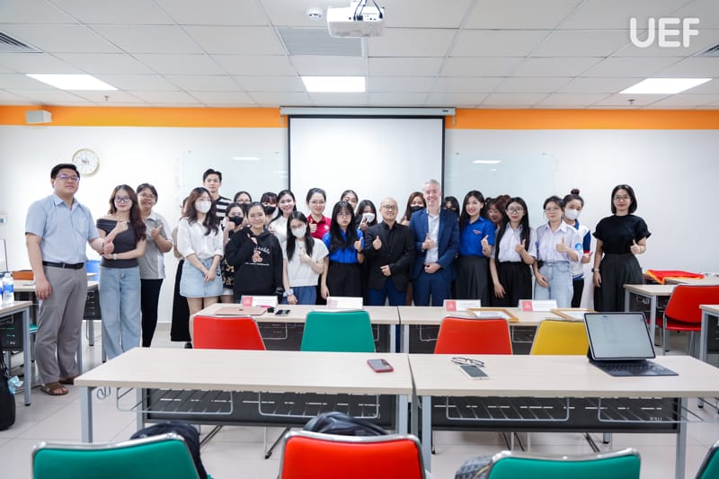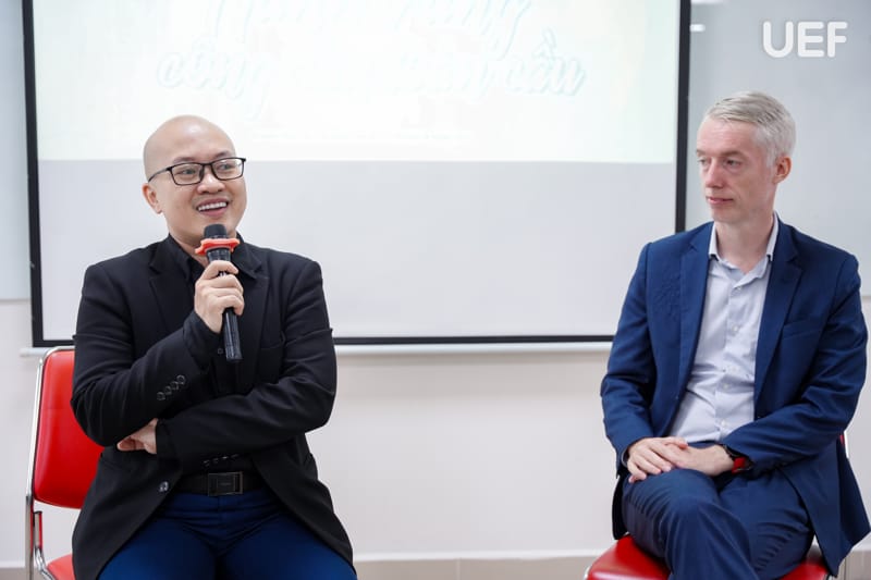 Chương trình có sự đồng hành của hai diễn giả nhiều kinh nghiệm trong lĩnh vực hội nhập quốc tế và lĩnh vực pháp luật: Mr. Barry Kirkwood - Chair - BritCham Prof Services Committee of BMK Pathways; Luật sư Nguyễn Hoàng Minh - Chủ tịch Hội đồng quản trị Công ty Harvey & Morris. Cả hai khách mời đã mang đến cho sinh viên những chia sẻ chân thực và sâu sắc về hành trình trở thành công dân toàn cầu từ chính trải nghiệm của mình.