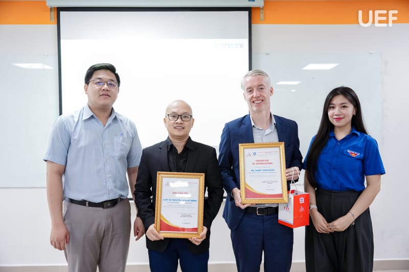 Đại diện Đoàn trường UEF và Đoàn Thanh niên - Hội sinh viên Khoa Luật cảm ơn các diễn giả