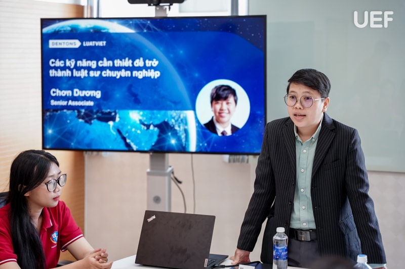 Tiếp nối phần chia sẻ của chị Cẩm Chơn, Luật sư Chan Hong cũng chia sẻ những góc nhìn đa chiều về kinh nghiệm trong quá trình hành nghề và lộ trình phát triển nghề nghiệp tại một hãng luật quốc tế cho các bạn sinh viên. Anh đặc biệt nhấn mạnh rằng, điều quan trọng nhất khi làm luật sư chính là đạo đức nghề nghiệp. Dù có sự khéo léo trong các tình huống pháp lý, nhưng sự trung thực là nguyên tắc không thể thiếu. Lời khuyên của anh là dù có không thích một công việc cụ thể nào đó, mỗi luật sư vẫn phải giữ sự kính trọng với nghề và hoàn thành đúng trách nhiệm của mình.