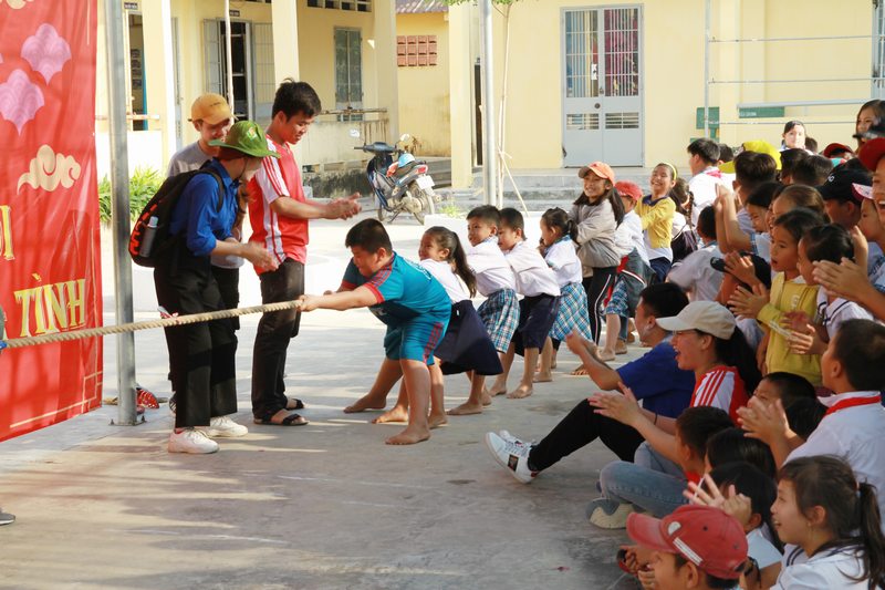 Cạnh đó, các bạn còn lắp ráp sân chơi bóng rổ và sân bóng đá cho các bạn nhỏ. Sinh viên UEF đã có dịp giao lưu với các em nhỏ qua các trò chơi dân gian, ôn lại ký ức tuổi thơ và cùng mang đến nhiều tiếng cười hạnh phúc.