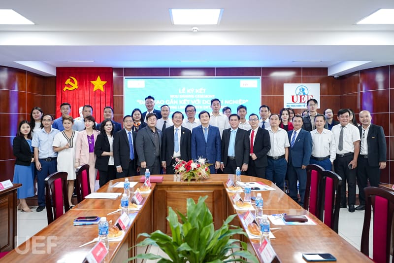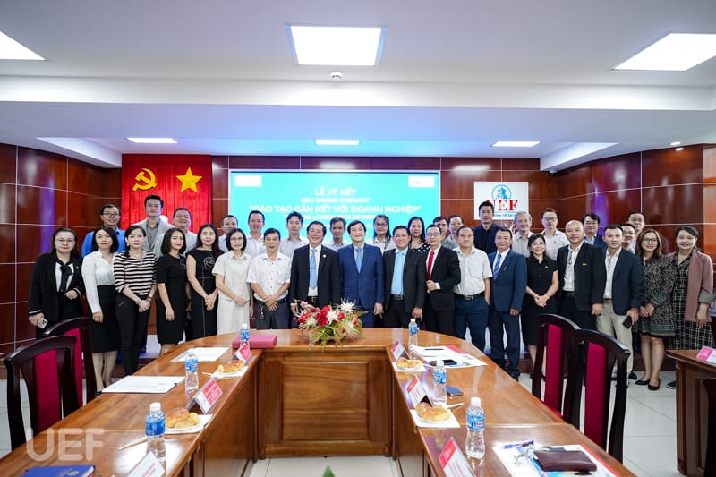 Đại diện UEF có ông Đỗ Quốc Anh - Phó Chủ tịch Hội đồng trường, TS. Nhan Cẩm Trí - Phó Hiệu trưởng Nhà trường, ThS. Huỳnh Quốc Phong - Giám đốc Trung tâm Hợp tác doanh nghiệp, ThS. Vũ Anh Sao - Phó Trưởng khoa Luật, ThS. Nguyễn Thị Kim Loan - Phó Giám đốc Trung tâm Hợp tác doanh nghiệp.