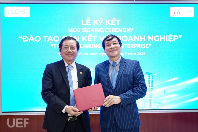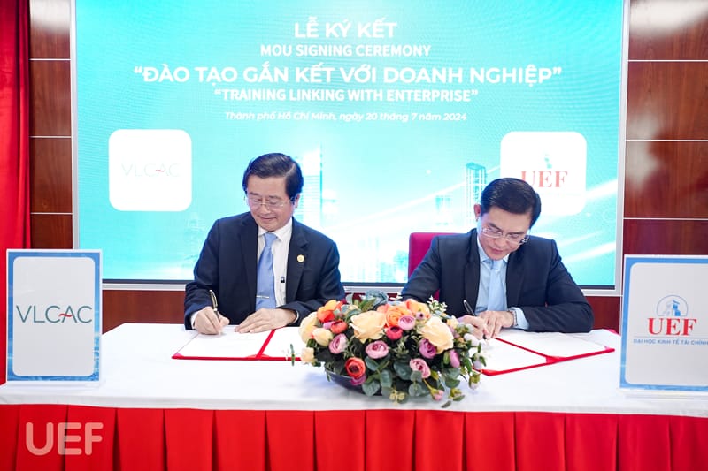 Sáng ngày 20/7, UEF đã tổ chức buổi ký kết MOU với Trung tâm Trọng tài thương mại luật gia Việt Nam (VLCAC). Chương trình có sự tham dự của hơn 50 đại diện doanh nghiệp, cơ quan pháp lý. Sự hợp tác với VLCAC sẽ tạo điều kiện cho sinh viên nhóm ngành luật tiếp cận những kiến thức pháp lý thực tiễn, trau dồi kỹ năng và mở rộng cơ hội thực tập, việc làm.