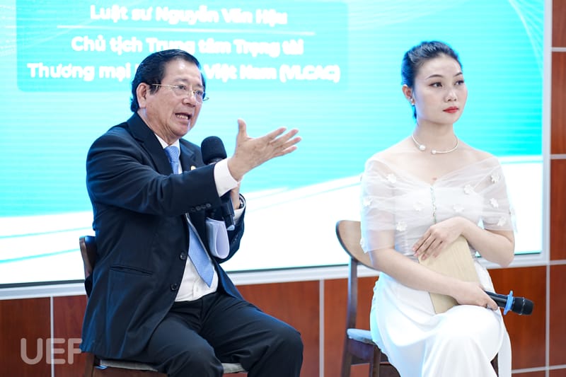 Luật sư Nguyễn Văn Hậu cũng cho biết khi được đề nghị ký kết hợp tác với UEF, VLCAC mong muốn cung cấp những kiến thức bổ ích cho sinh viên về tranh chấp thương mại nói riêng và các kiến thức luật pháp nói chung. Mối quan hệ hợp tác này có thể đi vào chiều sâu và giúp tạo ra môi trường thực học đa dạng cho sinh viên trong thời gian tới.