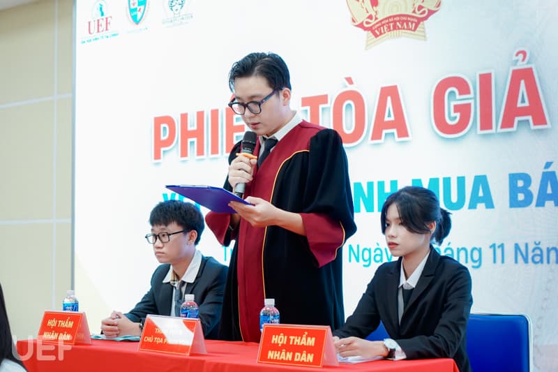 Tại Nhà UEF, sinh viên có cơ hội trải nghiệm, học tập thực tế qua nhiều hình thức, trong đó phiên tòa giả định được xem là mô hình vận dụng kiến thức vào thực tiễn hiệu quả, một "đặc sản" đáng chú ý của Khoa Luật.