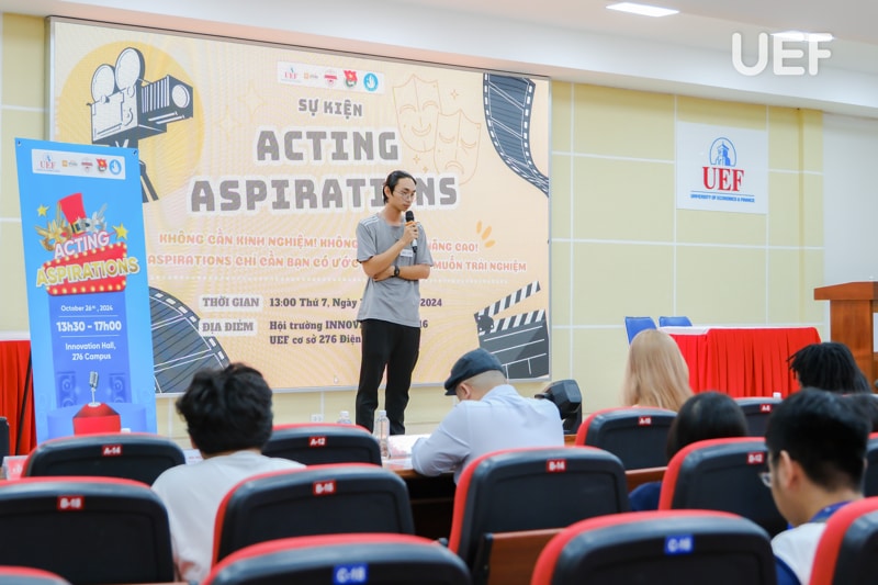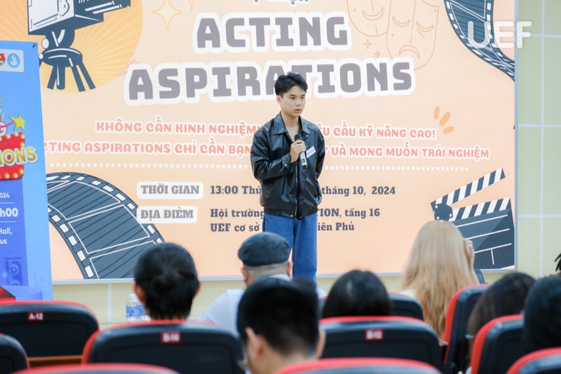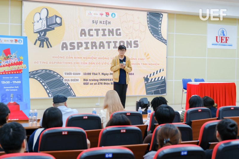Ngày 26/10 vừa qua, Khoa Tiếng Anh đã tổ chức thành công sự kiện "Acting Aspirations - Chắp cánh cho những ước mơ diễn xuất". Chương trình mang đến một không gian đầy cảm hứng cho các bạn sinh viên đam mê phim ảnh, là nơi để UEFers thể hiện tài năng, khám phá bản thân và bước đầu hiện thực hóa ước mơ trong lĩnh vực nghệ thuật biểu diễn.