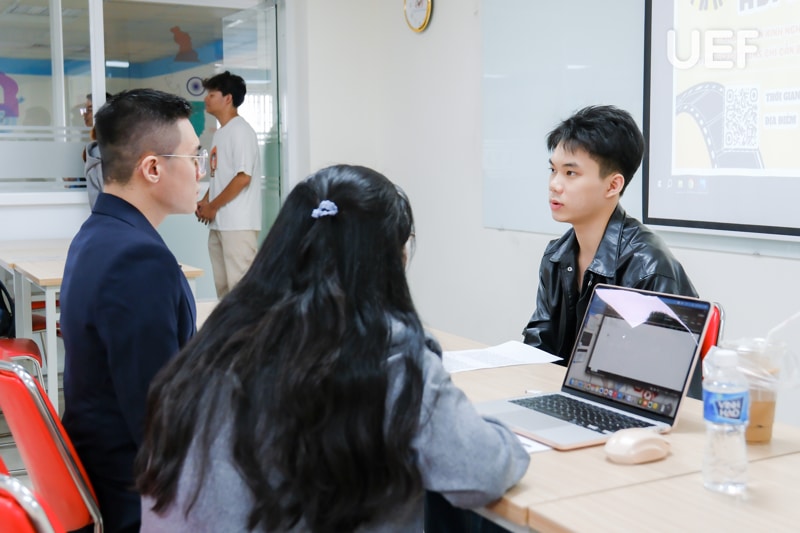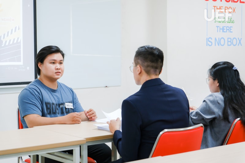 Tham dự sự kiện có ThS. Nguyễn Đình Tuấn - Phó Trưởng Khoa Tiếng Anh, Phó Giám đốc Trung tâm Tin học và Ngoại ngữ; ThS. Võ Trọng Nghĩa và ThS. Ngô Nguyễn Thiên Duyên - giảng viên Khoa Tiếng Anh. Các thầy, cô đảm nhận vai trò phỏng vấn vòng đầu tiên.
