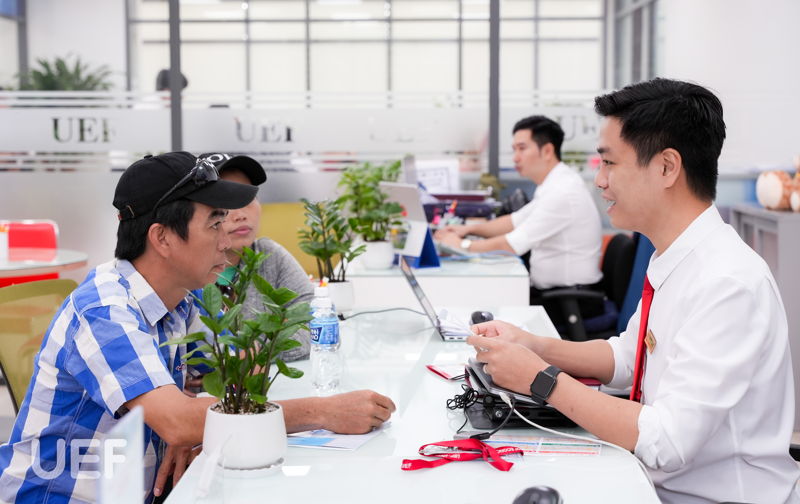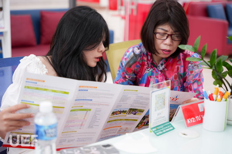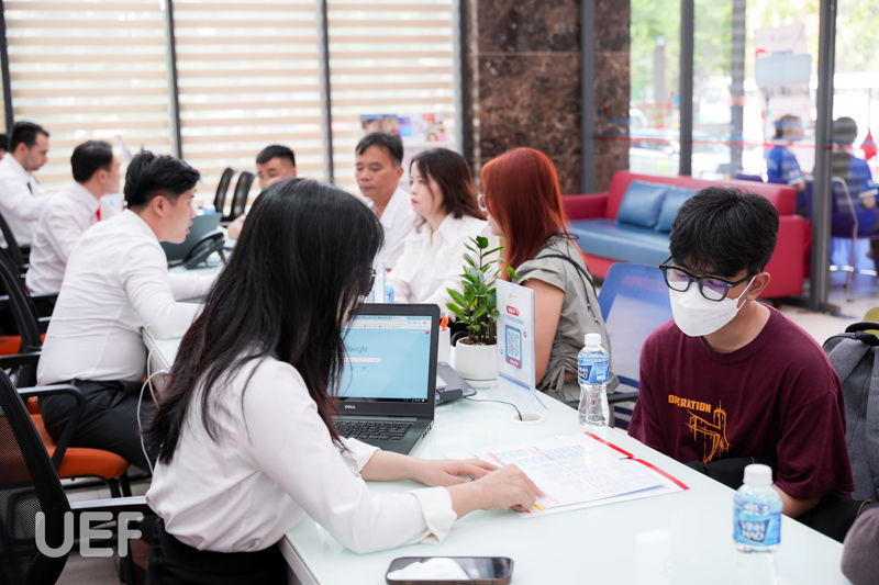 Đến với UEF, thí sinh nhận được sự tư vấn và hỗ trợ nhiệt tình từ các thầy cô, anh, chị nhân viên. Hỗ trợ trực tiếp 1:1 tận tình và chu đáo, UEF giúp các bạn thoải mái tiếp nhận thông tin. Từ đó đưa ra quyết định đặt để nguyện vọng sao cho phù hợp nhất. Đối với những thí sinh chưa tham gia vào chương trình tiếng Anh trải nghiệm miễn phí, đây cũng là dịp để các bạn kiểm tra năng lực của mình. Nhân dịp đến với UEF, khu vực trải nghiệm tiếng Anh của UEF tiếp tục trở nên nhộn nhịp.