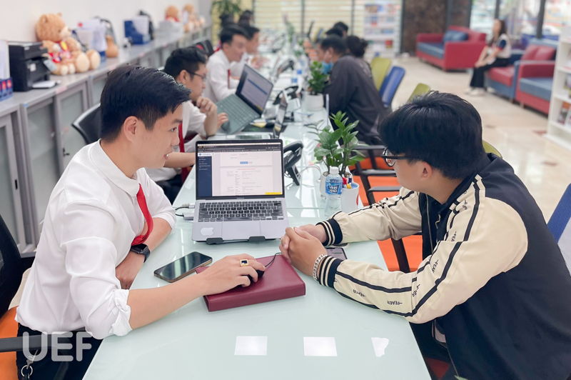 Sáng ngày 18/7 là thời điểm Bộ Giáo dục và Đào tạo (GD&ĐT) mở cổng đăng ký nguyện vọng xét tuyển đại học cho hàng triệu thí sinh THPT trên cả nước. Team 2k6 đã trúng tuyển có điều kiện vào UEF ở phương thức xét tuyển sớm cũng lần lượt đến trường để được tư vấn hỗ trợ hoàn tất đăng ký trực tuyến ngay trong hôm nay.