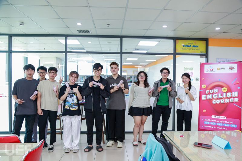 Góp phần mở rộng môi trường rèn luyện tiếng Anh cho sinh viên, nhất là trau dồi thêm vốn từ vựng, ngữ pháp, tình huống giao tiếp,… Khoa Tiếng Anh UEF đã tạo nên một không gian học tiếng Anh thú vị và bổ ích - Fun English Corner. Những hoạt động đầu tiên của góc nhỏ học tập này đã diễn ra vào sáng nay - 12/5 tại khu tự học (Tầng 6, cơ sở 141).