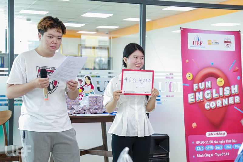 Bên cạnh Fun English Corner, Khoa Tiếng Anh UEF tiếp tục “làm nóng” các chương trình học thuật ngoại khóa như English Only Day và được đông đảo sinh viên quan tâm. Nhà UEF nói chung và Khoa Tiếng Anh nói riêng luôn cố gắng mở ra thật nhiều sân chơi, góc học tập mới để sinh viên có thêm cơ hội tiếp cận với ngôn ngữ, nhanh chóng hòa nhập vào môi trường giáo dục quốc tế.