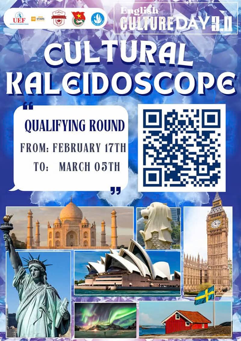 Nếu bạn đam mê khám phá văn hóa thế giới và muốn thử sức trong một sân chơi sáng tạo thì Cultural Kaleidoscope chính là cơ hội tuyệt vời dành cho bạn! Cuộc thi đã diễn ra vòng loại từ 17/2, vòng Chung kết sẽ được tổ chức vào ngày 14/3. Sân chơi này dành cho sinh viên UEF thi theo đội 2 người. Cụ thể: