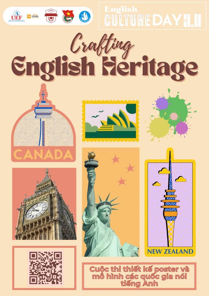 Nhằm tạo ra sân chơi cho những sản phẩm nghệ thuật độc đáo, kết hợp giữa sáng tạo và giá trị lịch sử, triển lãm "Crafting English Heritage" sẽ mở ra một không gian đầy sáng tạo, nơi sinh viên thể hiện góc nhìn của mình về di sản văn hóa của các quốc gia nói tiếng Anh. Các tác phẩm triển lãm, bao gồm posters hoặc mô hình, được thực hiện theo nhóm từ một đến 5 sinh viên.