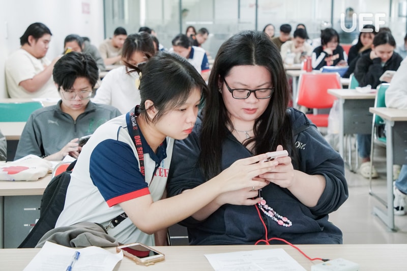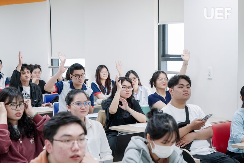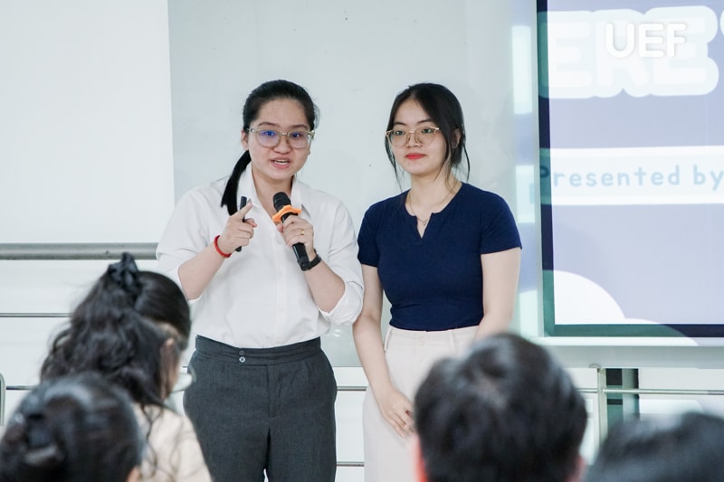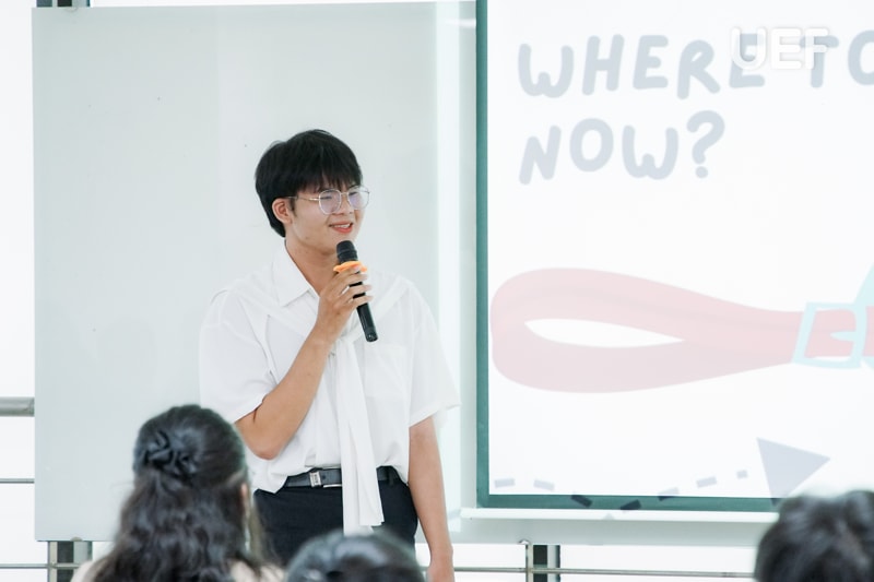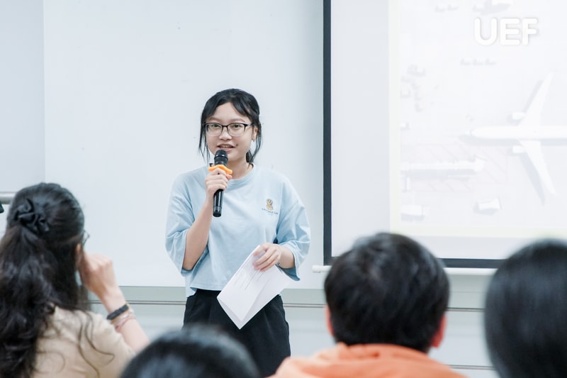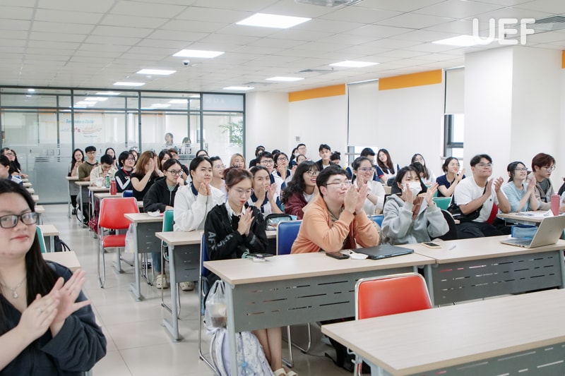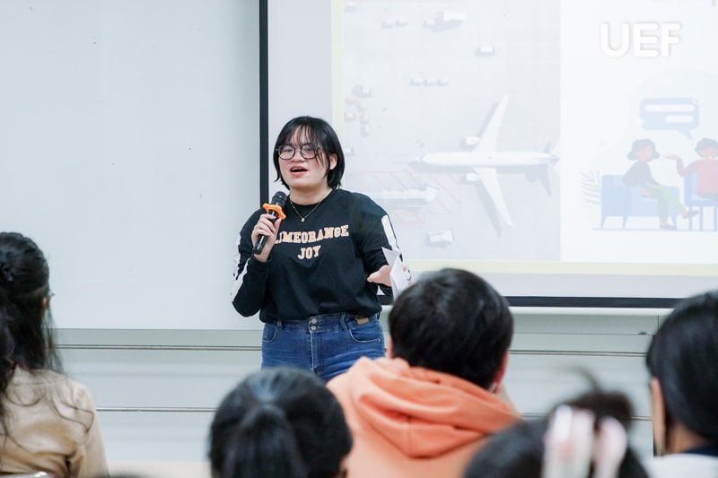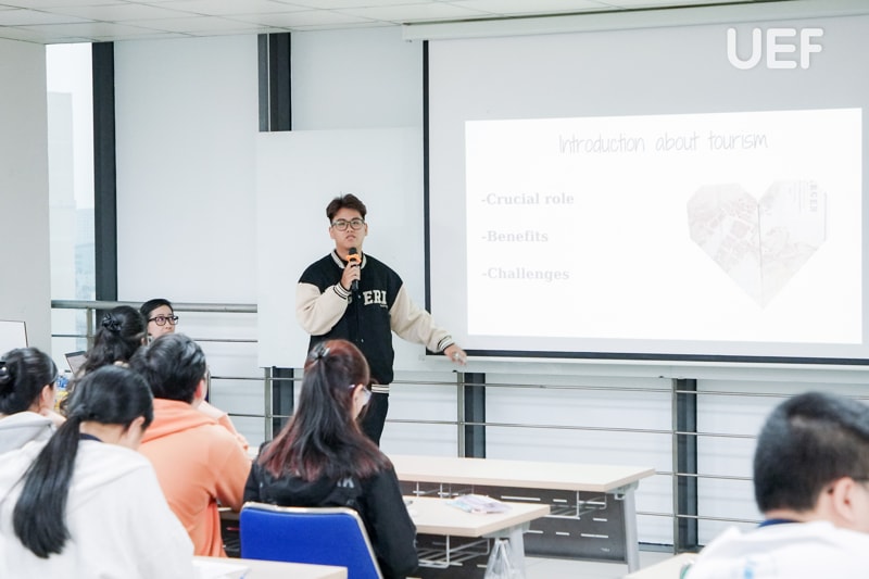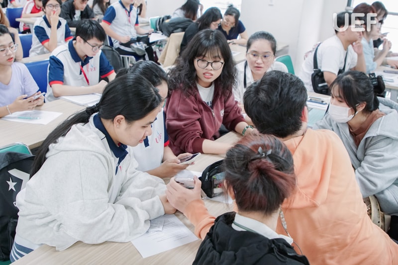 Vượt qua giới hạn của một không gian học tập, các bạn đã nhanh chóng hòa nhập và kết nối cùng bạn bè mới có cùng đam mê du lịch. UEFers tự tin và thoải mái chia sẻ những “bí kíp” của riêng mình từ các địa điểm tham quan trong nước cho đến quốc tế. Bên cạnh việc trình bày câu chuyện, quan điểm cá nhân, các bạn còn tích cực lắng nghe, học hỏi lẫn nhau, tạo nên một môi trường học tập tích cực và gắn kết.