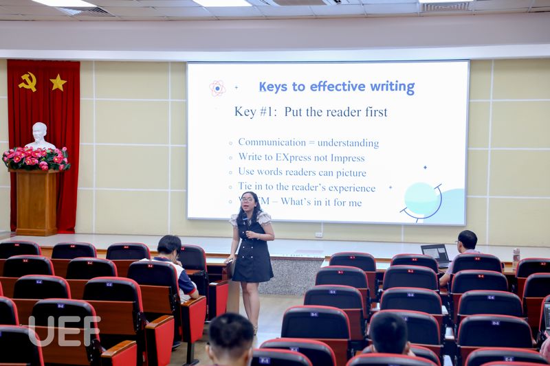 Ở những số trước của chuỗi hoạt động bồi dưỡng ngoại ngữ English seminar, sinh viên đã được tiếp cận với nhiều kiến thức từ cơ bản đến phức tạp, liên quan đến kỹ năng nghe - nói - đọc. Sáng nay - 24/5, Khoa Tiếng Anh UEF tiếp tục tổ chức buổi thứ 10 với chủ đề “Sentence diversity in English writing”, góp phần tăng cường kỹ năng viết cho UEFers.