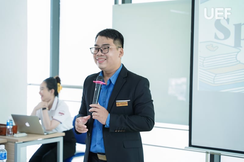 Mở đầu vòng thi, ThS. Nguyễn Đình Tuấn - Phó Trưởng khoa Tiếng Anh đã nhấn mạnh tầm quan trọng của việc tích lũy từ vựng trong quá trình học một ngôn ngữ mới, đặc biệt là tiếng Anh. Theo thầy, từ đơn và cụm từ là những tiền đề thiết yếu cần được liên tục trau dồi và mở rộng. Tuy nhiên, nhiều người vẫn xem nhẹ điều này, dẫn đến việc học ngoại ngữ không đạt hiệu quả. Chính vì vậy, thông qua cuộc thi, ThS. Nguyễn Đình Tuấn hy vọng sẽ góp phần giúp UEFers mở rộng kiến thức, đồng thời nhận thức rõ hơn về trình độ của bản thân. Từ đó, mỗi bạn sẽ có thể xây dựng một lộ trình học tập phù hợp và hiệu quả hơn.