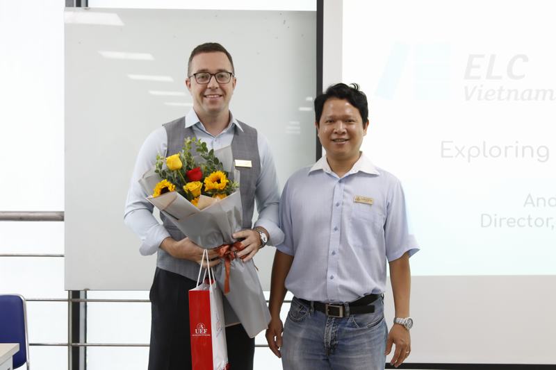 Đến với buổi hội thảo có sự hiện diện của TS. Lê Xuân Quỳnh, Phó Trưởng khoa Tiếng Anh cùng đại diện Trung tâm Anh ngữ ELC, thầy Andrew James Hall - Giám đốc và cô Trương Quỳnh Anh - Phó Giám đốc.