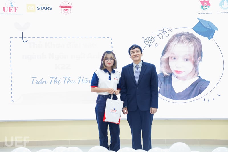 Tại buổi lễ, Khoa Tiếng Anh cũng đã trao thưởng cho các sinh viên có hoạt động nổi bật ở 3 hạng mục: Hoạt động phong trào, nghiên cứu khoa học, điều phối hoạt động trợ giảng. Ở mỗi hạng mục, các bạn sinh viên đã được nhận được giấy khen, hiện kim và các suất học bổng giá trị đến từ các đơn vị doanh nghiệp tài trợ. Sinh viên Trần Thị Thu Hồng - Thủ khoa đầu vào cũng được vinh danh và khen thưởng tại chương trình.