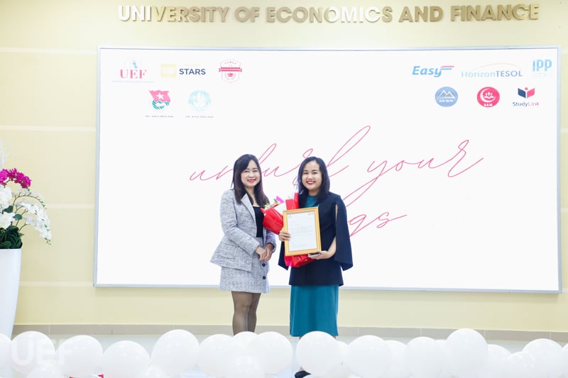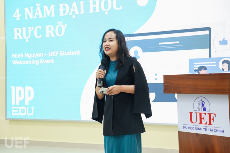 Đặc biệt, sự chia sẻ của bà Nguyễn Thanh Nguyệt Minh đến từ Trung tâm Anh ngữ IPP Edu đã mang đến nguồn cảm hứng lớn cho các “tân binh”. Được biết, bà từng đi qua 40 quốc gia, tốt nghiệp thạc sĩ xuất sắc ở Anh và hiện đang sở hữu một trung tâm dạy IELTS được nhiều sinh viên UEF theo học.