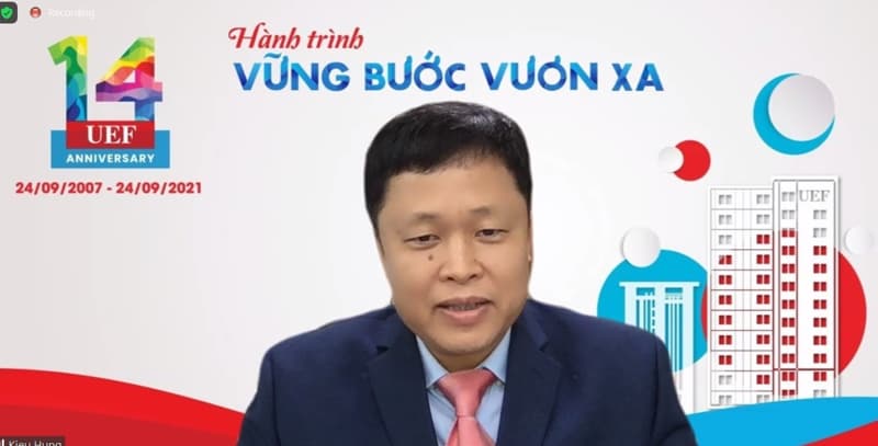 Để ôn lại những ký ức về mái nhà chung từ ngày mới thành lập, thầy Đỗ Quốc Anh đã dành thời gian sơ lược về quá trình hình thành và phát triển của UEF trong 14 năm qua. Đồng thời, thầy chia sẻ: “Có thể nói, tuổi 15 nhựa sống căng tràn và thật đặc biệt khi UEF bước sang tuổi này trong "cơn bão" Covid. Sang giai đoạn mới, Nhà trường sẽ đứng trước nhiều thách thức nhưng cũng đầy cơ hội. Mong rằng tập thể đội ngũ Nhà trường sẽ luôn dồi dào sức khỏe, có những đổi mới, sáng tạo để phục vụ tốt công việc, góp phần đưa UEF ngày càng phát triển vững mạnh và thăng hạng trên bản đồ các trường đại học”.