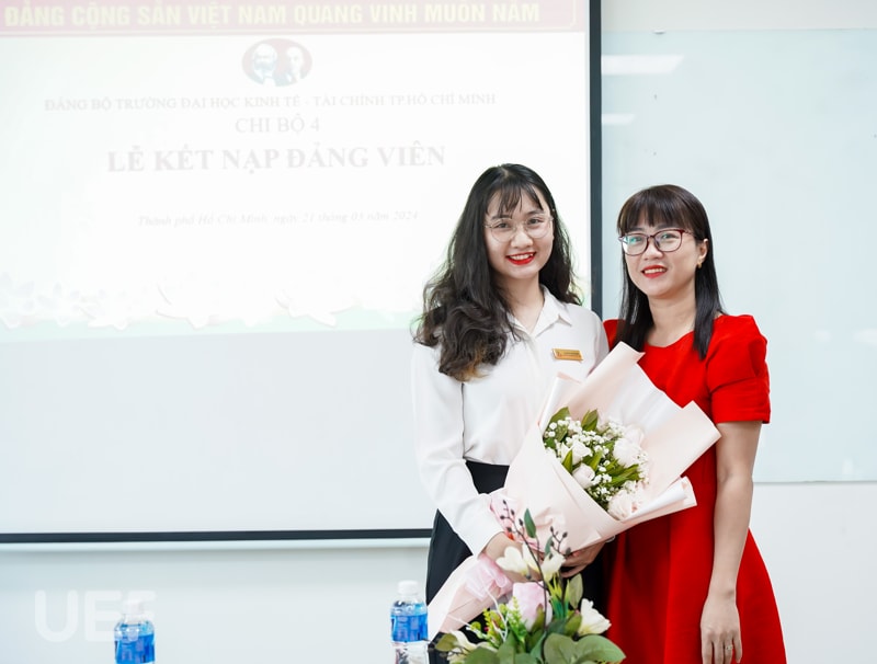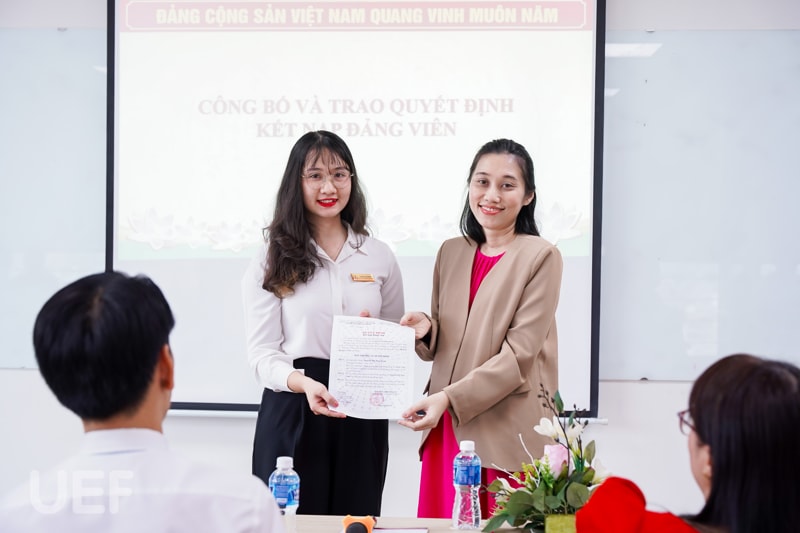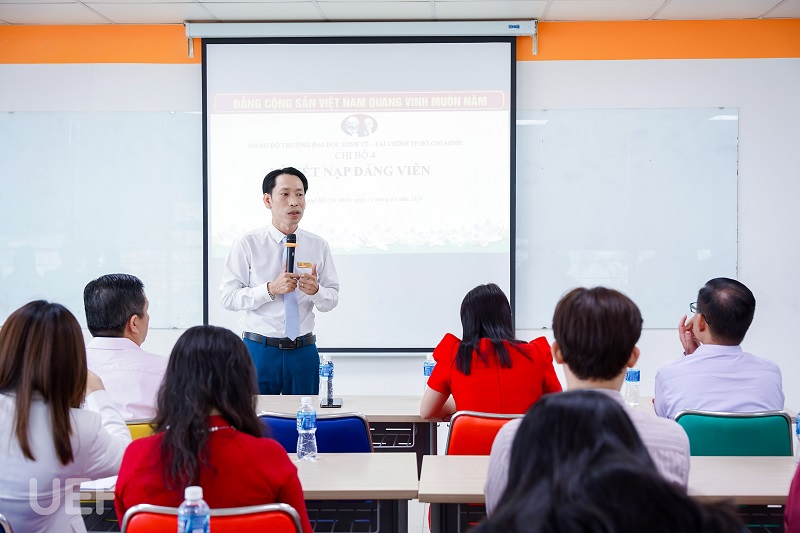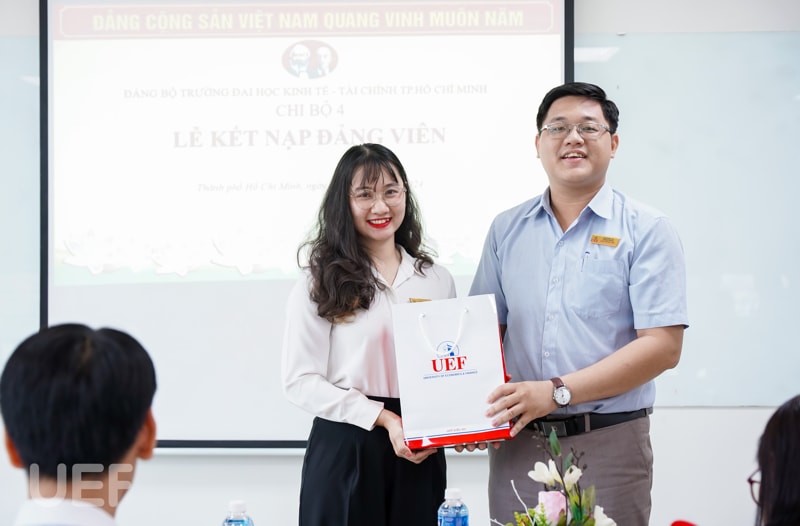 Buổi lễ kết nạp Đảng viên mới có sự tham dự đại diện Đảng ủy UEF: Đồng chí (Đ/c) Mạch Trần Huy - Phó Bí thư Đảng ủy. Đại diện lãnh đạo Nhà trường có: đồng chí Nhan Cẩm Trí - Phó Hiệu trưởng, Đ/c Đặng Thị Lệ Quyên - Phó Chủ tịch Công Đoàn trường. Về phía Khoa có Đảng viên được kết nạp có Đ/c Phạm Huy Cường - Trưởng Khoa, Đ/c Dương Mỹ Thẩm - Phó Trưởng Khoa.