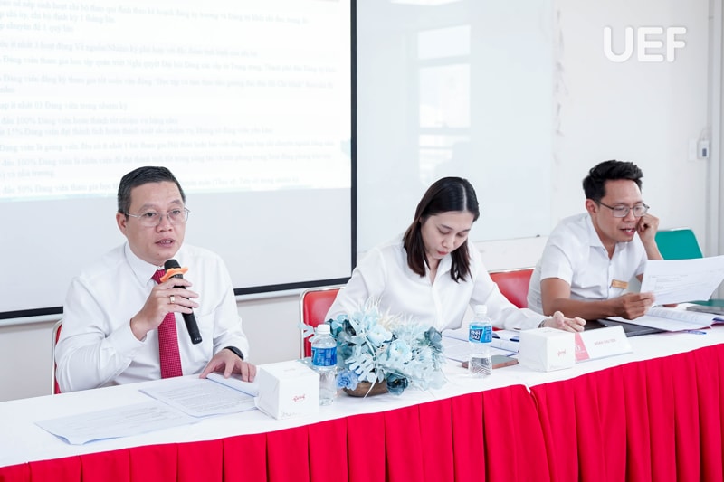 Tại Đại hội, các Đảng viên đã tiến hành biểu quyết và thống nhất thông qua dự thảo văn kiện Đại hội nhiệm kỳ 2025-2027. Việc thảo luận sôi nổi và đóng góp ý kiến từ các Đảng viên đã giúp văn kiện được hoàn thiện, phản ánh rõ định hướng phát triển phù hợp với thực tiễn và yêu cầu phát triển của UEF. Đồng thời, Đại hội cũng đã nhất trí thông qua Đề án nhân sự Ban Chấp hành Chi bộ nhiệm kỳ 2025-2027. Những cá nhân được đề cử vào Ban Chấp hành mới đều là những cán bộ có phẩm chất chính trị vững vàng, có năng lực chuyên môn và kinh nghiệm thực tiễn, hứa hẹn sẽ tiếp tục phát huy vai trò lãnh đạo, đưa các Chi bộ ngày càng phát triển vững mạnh.
