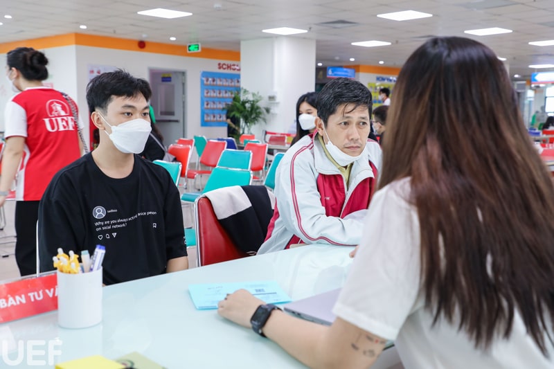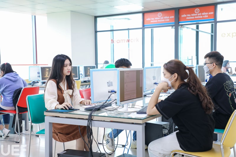 Triển khai chương trình trải nghiệm ngoại ngữ tiền đại học "độc quyền" dành cho các thí sinh đăng ký xét tuyển vào trường, UEF đã bước đầu tạo điều kiện để nhiều 2k4 sớm tiếp cận môi trường học tập mới. Trong ngày đầu tiên thực hiện - 14/7, khu vực kiểm tra tiếng Anh trải nghiệm đã chào đón đông đảo các thí sinh đến từ nhiều tỉnh, thành lân cận TP.HCM.
