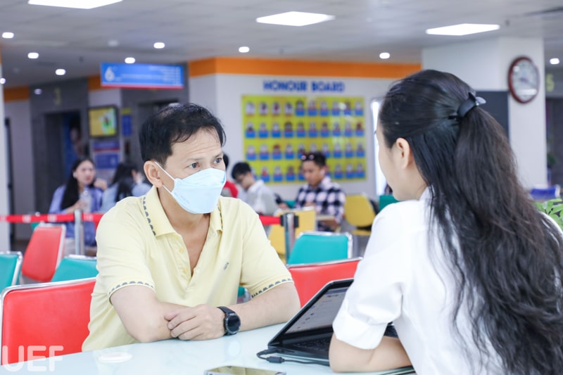 Vượt quãng đường khá xa từ khu vực đồng bằng sông Cửu Long đến tham gia làm bài từ sớm, cho thấy mong muốn và quyết tâm của các thí sinh khi đặt niềm tin vào UEF ở 4 năm đại học sắp tới. Bạn Dương Anh Hào đến từ Đồng Tháp chia sẻ: "Em đã xét tuyển học bạ theo tổ hợp 3 môn lớp 12 vào ngành Tài chính - Ngân hàng ở trường. Em được biết về khóa trải nghiệm này thông qua fanpage của UEF. Ngoại ngữ của em ở mức trung bình nên muốn tham gia khóa học để cải thiện kỹ năng nghe, đọc, viết. Về quá trình bài làm hôm nay, em thấy trường hỗ trợ rất tốt từ trang thiết bị cho đến đội ngũ tư vấn".