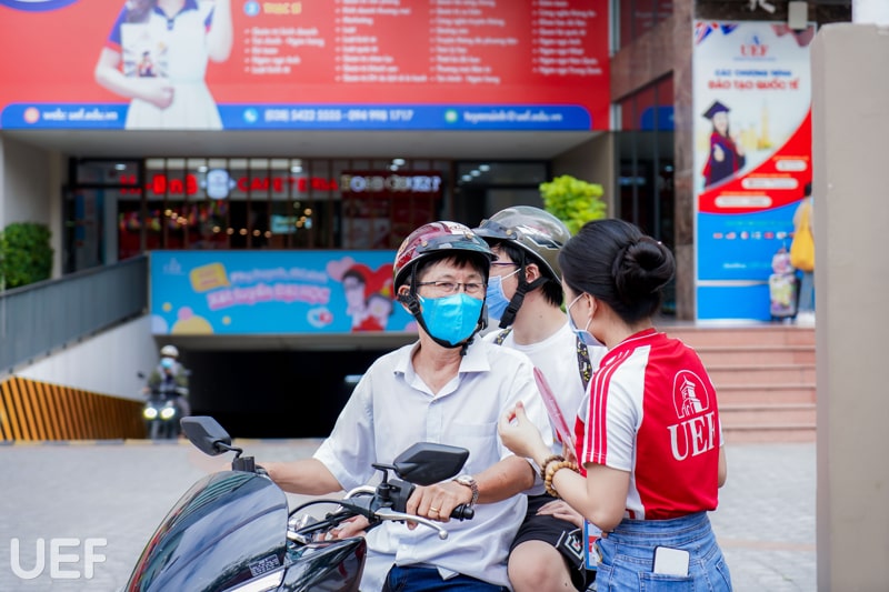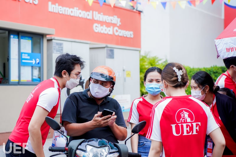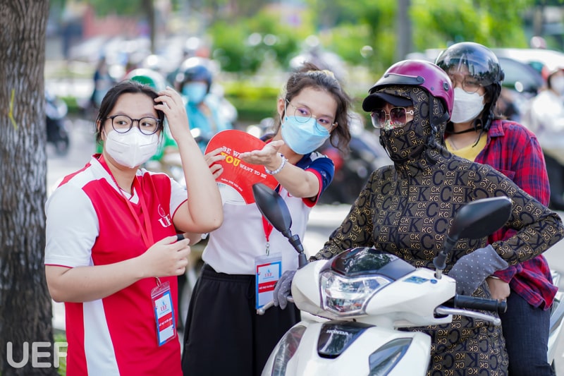 Đội ngũ UEF hỗ trợ các thí sinh, phụ huynh ngay từ cổng trường