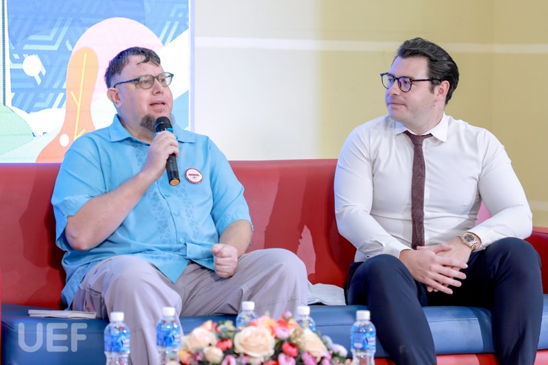 Trong khuôn khổ ngày hội, talkshow “Flourishing in Anglophone Countries” với sự đồng hành của ông Donald Hobbs - Chuyên gia trung tâm RELO, Đại sứ quán Mỹ tại Hà Nội; Bà Bành Phạm Ngọc Vân - Giám đốc Education New Zealand, Tổng lãnh sự quán New Zealand tại TP.HCM; Bà Lương Hà Linh - Trưởng bộ phận tuyển sinh INTO Global và ông Charles Price - Nhà sáng lập IELTS with Charles, đã mang đến cho UEFers nhiều góc nhìn, kiến thức mới lạ và hấp dẫn.