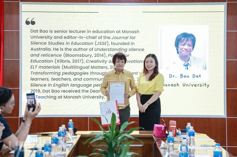 Sự kiện có sự tham dự của TS. Dương Mỹ Thẩm - Phó Trưởng Khoa Tiếng Anh UEF, ThS. Võ Quốc Đại - Phó Trưởng khoa Tiếng Anh, Đại học HUTECH, TS. Nguyễn Đăng Nguyên - Trưởng Khoa Ngữ văn Anh, Đại học Khoa học Xã hội và Nhân văn TP.HCM. Bên cạnh đó là sự tham gia nhiệt tình của toàn thể các thầy cô giảng viên, nghiên cứu sinh, sinh viên Khoa Tiếng Anh. Đồng hành và trực tiếp hướng dẫn trong buổi seminar là TS. Bảo Đạt đến từ Trường Đại học Monash, Úc.