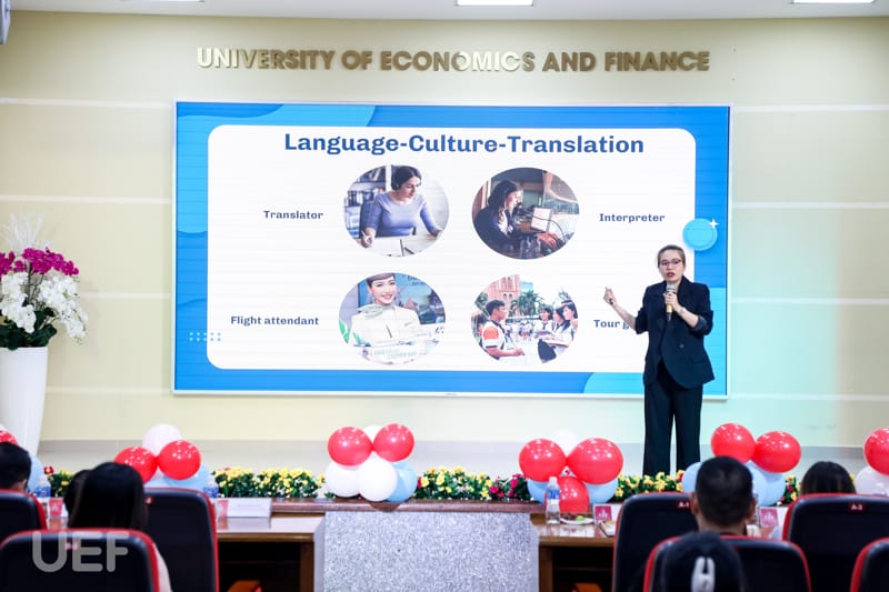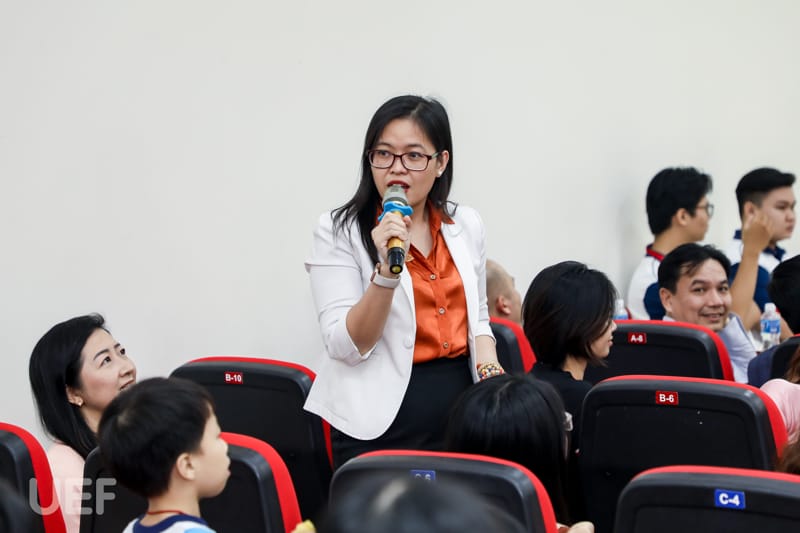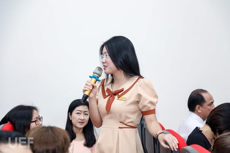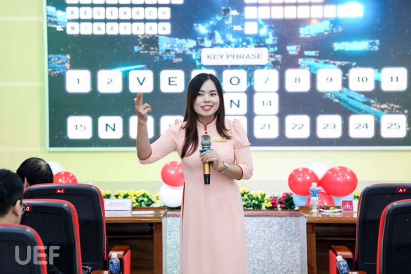Trong khuôn khổ chương trình Welcome Freshman, tân sinh viên còn được gặp gỡ và truyền cảm hứng từ chị Vũ Quỳnh Như - Co-founder, Giám đốc học thuật và đào tạo tại hệ thống trung tâm Anh ngữ Easy Edu. Diễn giả cũng là cựu sinh viên ngành Ngôn ngữ Anh UEF khóa 2015.