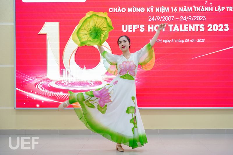 Tiếp nối “sức nóng” của “The Face UEF 2023”, chiều 21/9 tiếp tục diễn ra sân chơi "UEF’s Hot Talent". Sân khấu quy tụ hơn 21 tiết mục đăng ký dự thi đến từ các tổ Công đoàn cùng đa dạng hình thức biểu diễn như đàn, hát, múa, độc thoại,... Các thể loại được thầy cô chọn lọc dự thi cũng không kém phần phong phú từ nhạc nhẹ, nhạc trẻ cho đến dân ca, cải lương đầy đặc sắc. Có thể thấy, sau những giờ dạy trên giảng đường, thầy, cô Nhà UEF là những “người nghệ sĩ” đa tài.