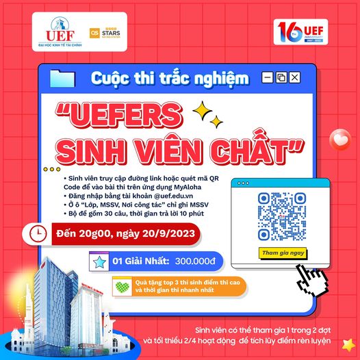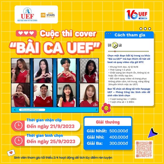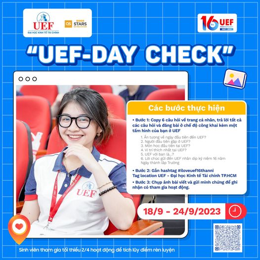 Những ngày qua sinh viên Nhà UEF cũng hoạt động "hết công suất" trên fanpage Phòng Công tác sinh viên với hàng loạt cuộc thi thú vị mừng sinh nhật UEF và chào đón năm học mới. Trong đó có 3 sân chơi đáng chú ý là: UEF - Day Check, Cover Bài ca UEF và UEFers - Sinh viên chất.