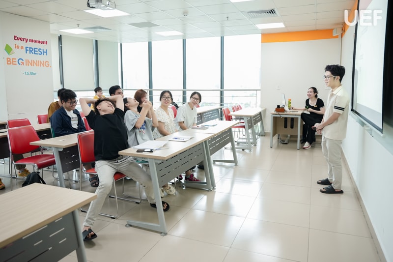 Không gian học tập sôi nổi, đầy cảm hứng, mang lại tiếng cười rộn rã suốt buổi học cho 2k7 là ghi nhận đáng chú ý tại lớp tiếng Anh trải nghiệm của UEF. Lớp học là bước đà giúp các bạn trẻ bước đầu làm quen với phương pháp học tập hiện đại, cởi mở và định hướng bản thân trong hành trình tương lai. Lớp học có sự đồng hành của các giảng viên chuyên môn đến từ Khoa Tiếng Anh UEF.