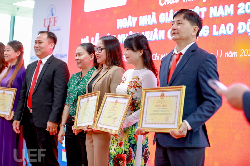 Buổi lễ là dịp để thầy và trò UEF cùng nhau lắng nghe, sẻ chia câu chuyện nghề giáo, đồng thời cũng là dịp để Nhà trường vinh danh các tập thể, cá nhân có nhiều đóng góp, đạt nhiều thành tích nổi bật trong công tác giảng dạy, nghiên cứu khoa học và để toàn thể sinh viên được thể hiện lòng tri ân sâu sắc đối với quý thầy cô.