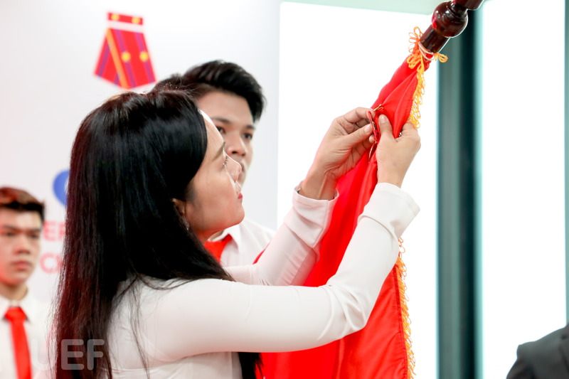 Bà Ngô Thị Hoàng Các – Phó giám đốc Sở Nội Vụ, Trưởng Ban – Ban Thi đua khen thưởng Thành phố trao Huân chương Lao động hạng Nhì và Cờ thi đua của UBND Thành phố cho UEF