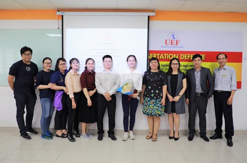 Trong đợt bảo vệ khóa luận tốt nghiệp lần này có 4 bạn sinh viên tham gia gồm: sinh viên Nguyễn Trung Tín với đề tài "Teacher’s roles in motivating first year students to learn English at the Ho Chi Minh City University of Economics and Finance"; Phạm Hoài Thanh Trang, đề tài "A Survey on English Presentation Skill among First - year Students Majoring in English at UEF and Suggested Activities for improvement"; Lê Thị Ngọc Trinh, đề tài "Factors contributing negatively to English speaking skill among freshmen at university"; Nguyễn Hoàng Bảo Ngọc, đề tài "Utilizing Educational Technology a tool to enhance language and communication of English as a foreign language (EPL) Students".