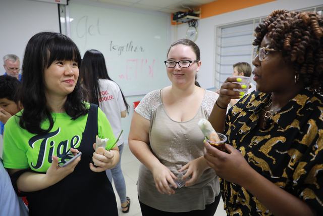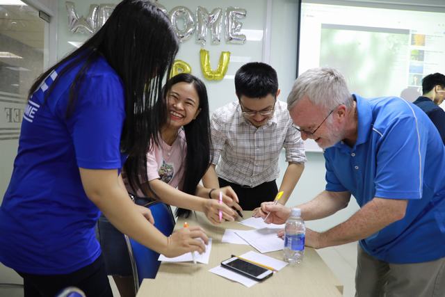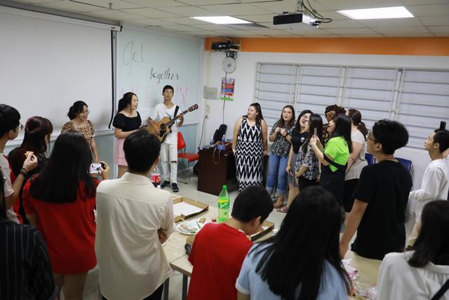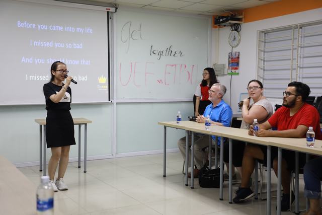 Tiếp nối buổi tọa đàm “Vietnamese and American Business Culture”, sinh viên ĐH East Texas Bapis (ETBU) và sinh viên chuyên ngành tiếng Anh UEF đã có buổi giao lưu thú vị vào tối 31/05/2019 vừa qua. Tại chương trình, sinh viên hai trường đã tìm hiểu về sự tương đồng và những điểm khác biệt trong văn hóa ẩm thực của Việt - Mỹ. Ngay sau đó, các bạn đã cùng nhau thưởng thức món bánh cuốn Việt Nam, pizza truyền thống của Mỹ và cùng nhau chia sẻ những câu chuyện thú vị. Không chỉ dừng lại ở đó, các bạn ETBU đã hòa lời ca, tiếng hát của mình vào các tiết mục văn nghệ ấn tượng. Mời các bạn cùng nhìn lại những khoảnh khắc giao lưu đặc biệt vừa qua nhé!