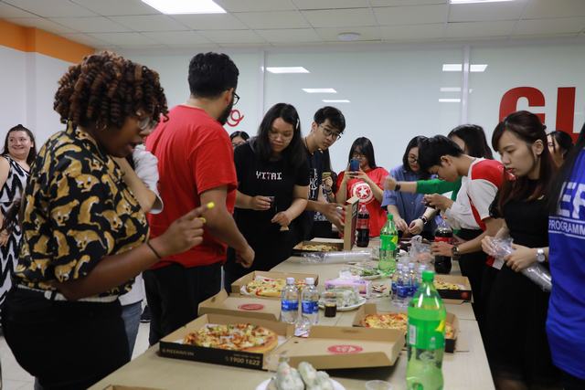 Sinh viên ETBU & UEF thưởng thức món “pizza” truyền thống của Mỹ,