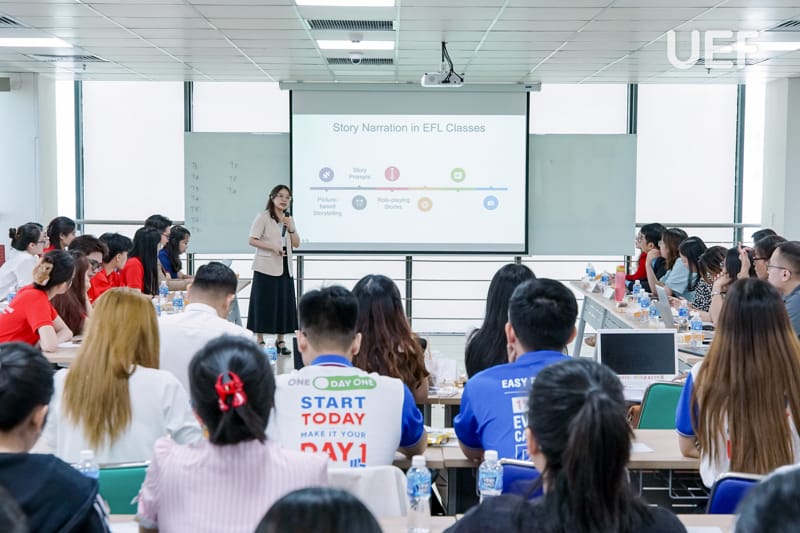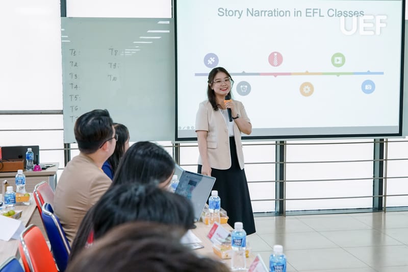 Các chủ đề để chia sẻ tại workshop gồm: “Enerizing EFL students through interactive language stations” - ThS. Đỗ Thị Thùy Vân, “Enhancing Vocabulary Learning through AI-generated Custom Materials” - ThS. Lê Thụy Thảo Sương, “Goal-oriented Story Narration to Promote Language Acquisition for EFL learners” - ThS. Nguyễn Thị Trúc Phương, “Assessment of Learning vs. Assessment for Learning: AI’s Role in Sustainable Laguage Education” - ThS. Lê Nguyên Lân.
