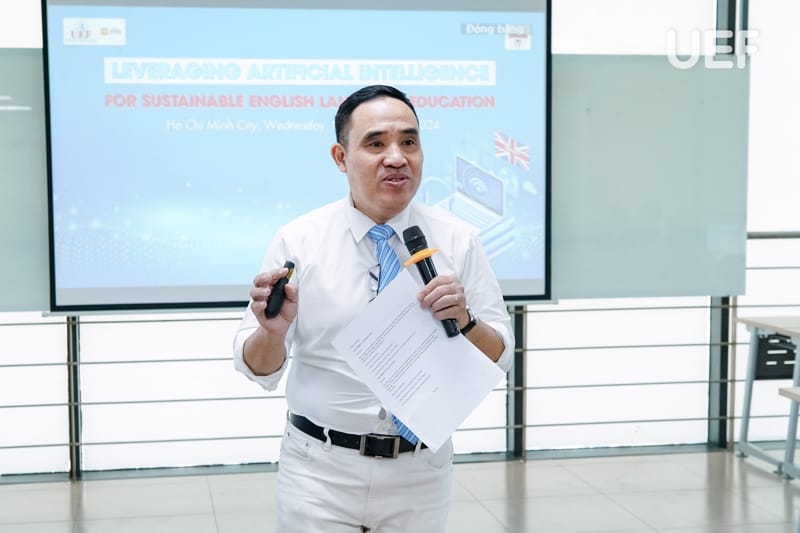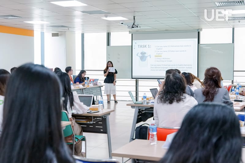 Những thắc mắc của sinh viên cũng được các thầy cô giải đáp cặn kẽ. Thông qua workshop, giảng viên và sinh viên Nhà UEF đã cập nhật một số công cụ AI hữu ích, đồng thời có thể tăng cường phương pháp dạy và học tiếng Anh hiệu quả, thúc đẩy sự phát triển bền vững trong giáo dục.