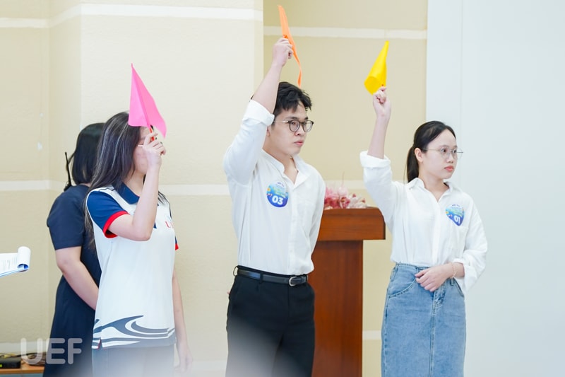 Ngoài năng lực ngoại ngữ, cuộc thi đòi hỏi sự nhạy bén, nhanh nhẹnCuộc thi đã giúp UEFers thể hiện vốn từ vựng phong phú của bản thân trong các lĩnh vực, đồng thời có thêm môi trường rèn luyện, giao tiếp ngoại ngữ cùng người nước ngoài cũng như sinh viên trường bạn.
