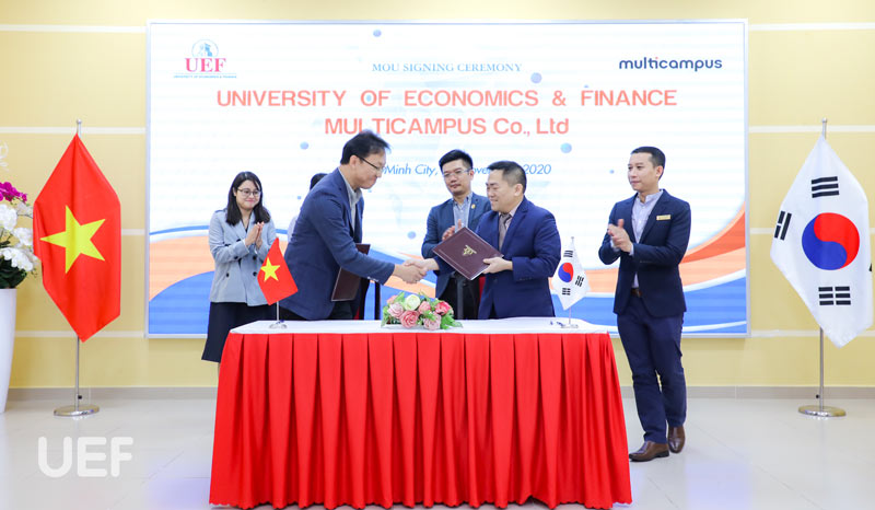 Theo đó, với mong muốn mở rộng cơ hội học tập quốc tế, tìm hiểu sâu hơn về doanh nghiệp, môi trường công sở, phong cách làm việc của người Hàn Quốc, chiều ngày 26/11 vừa qua, UEF đã tổ chức “Lễ ký kết MOU với công ty Multicampus” cùng hoạt động tìm hiểu văn hóa doanh nghiệp Hàn.
